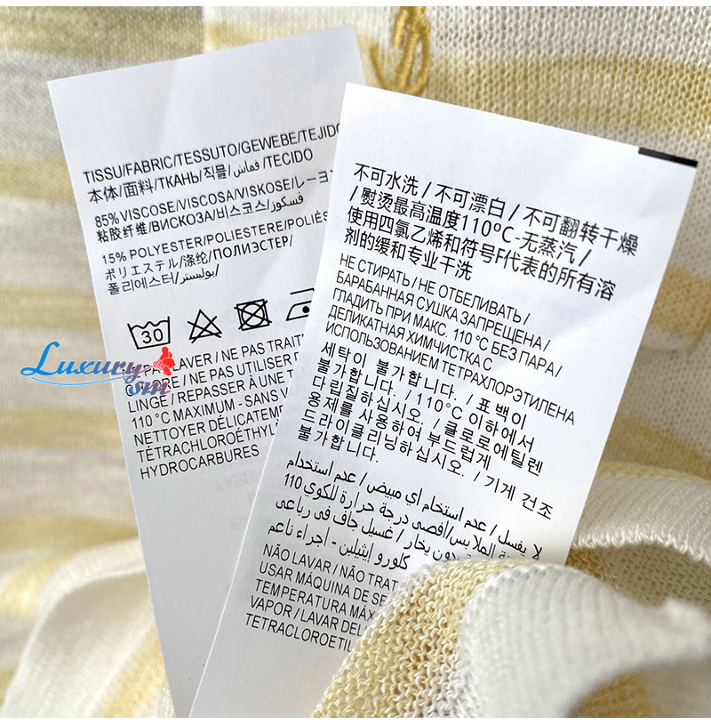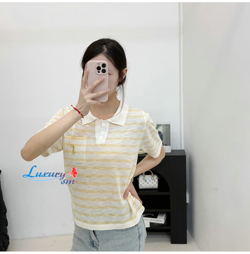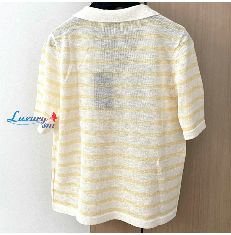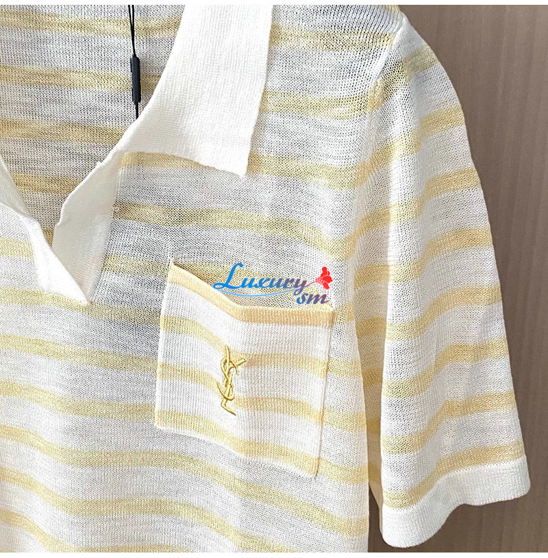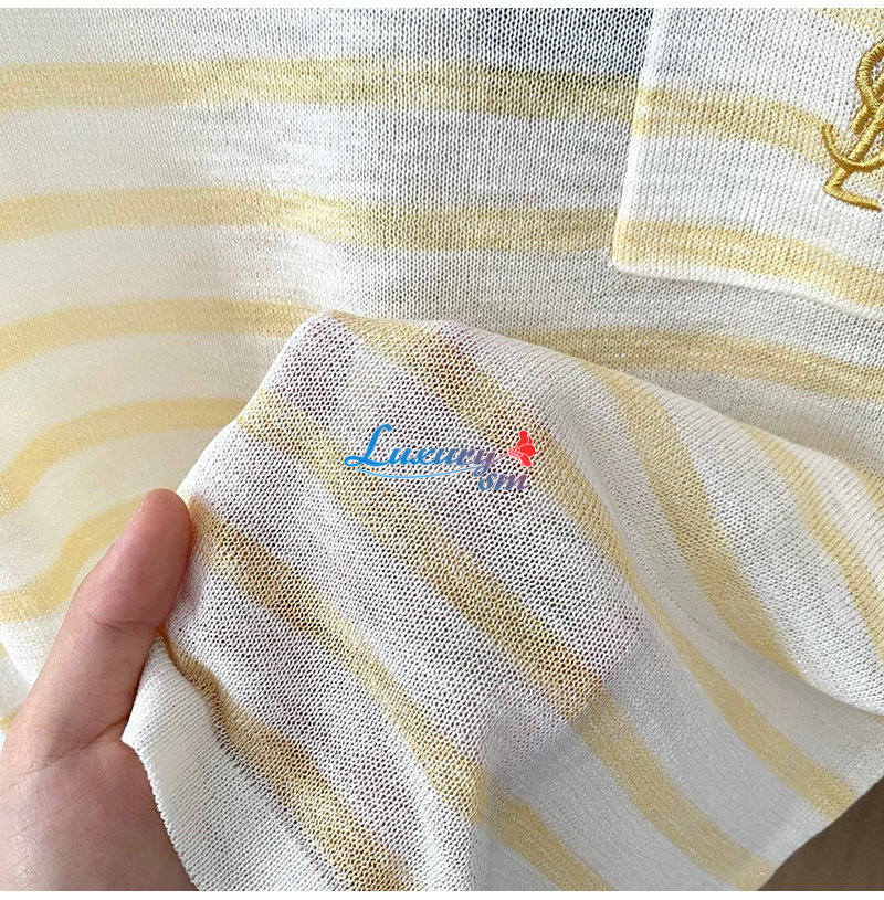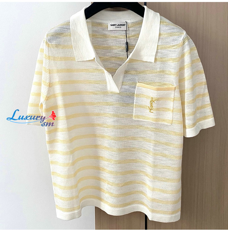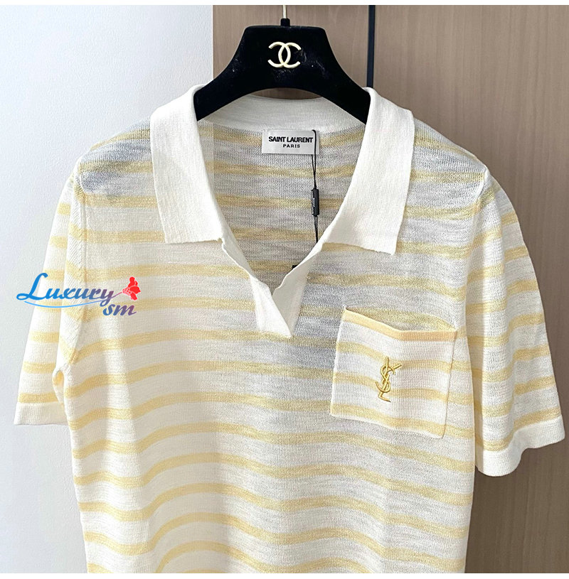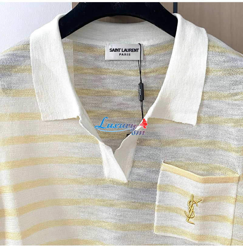 SAINT LAURENT-07267 생 로랑 화이트/옐로우 스트라이프 폴로 티셔츠 여성용
