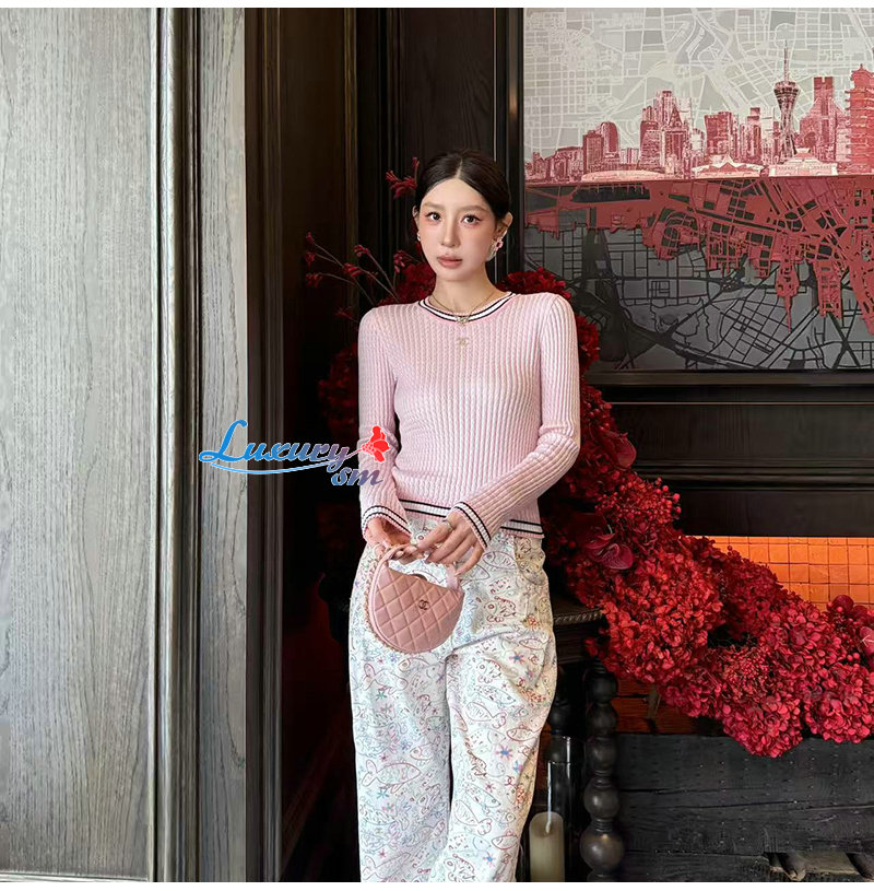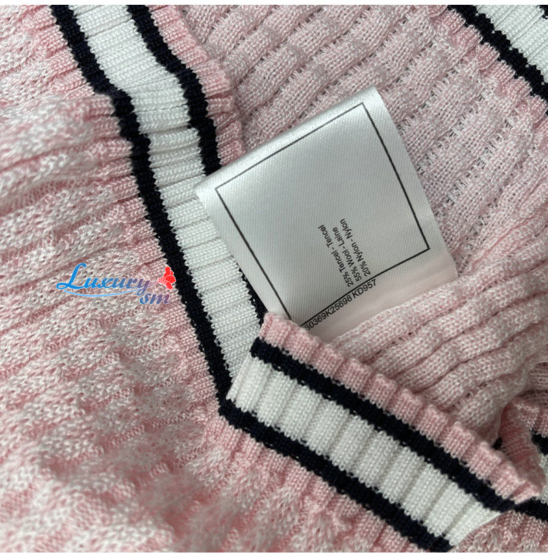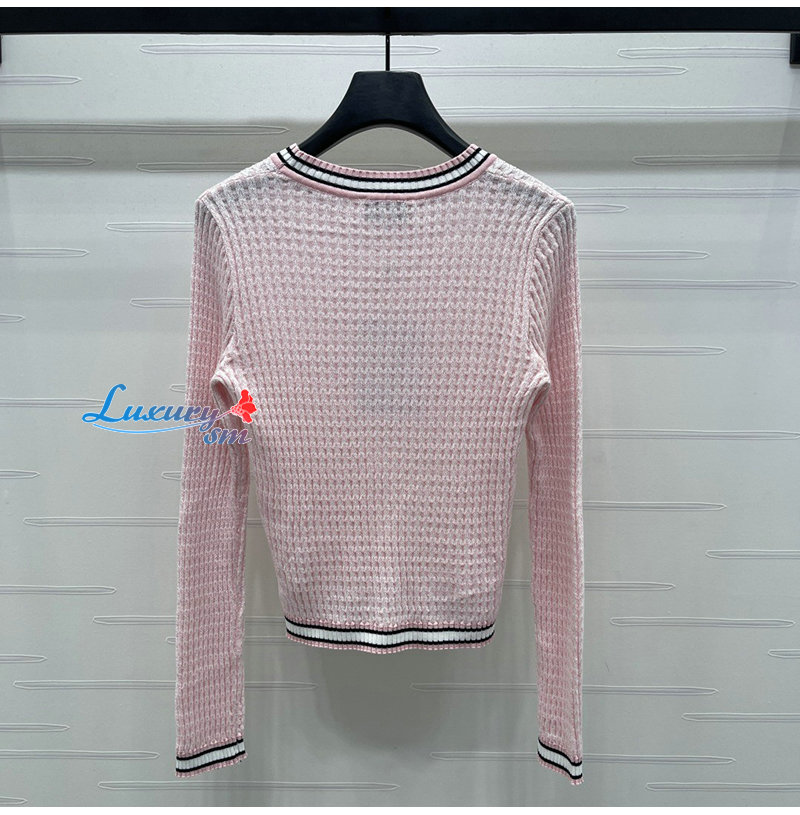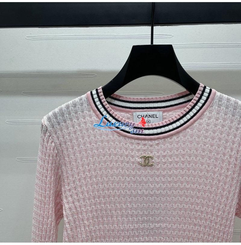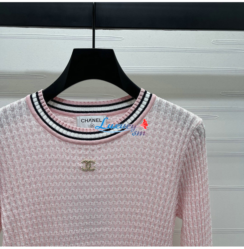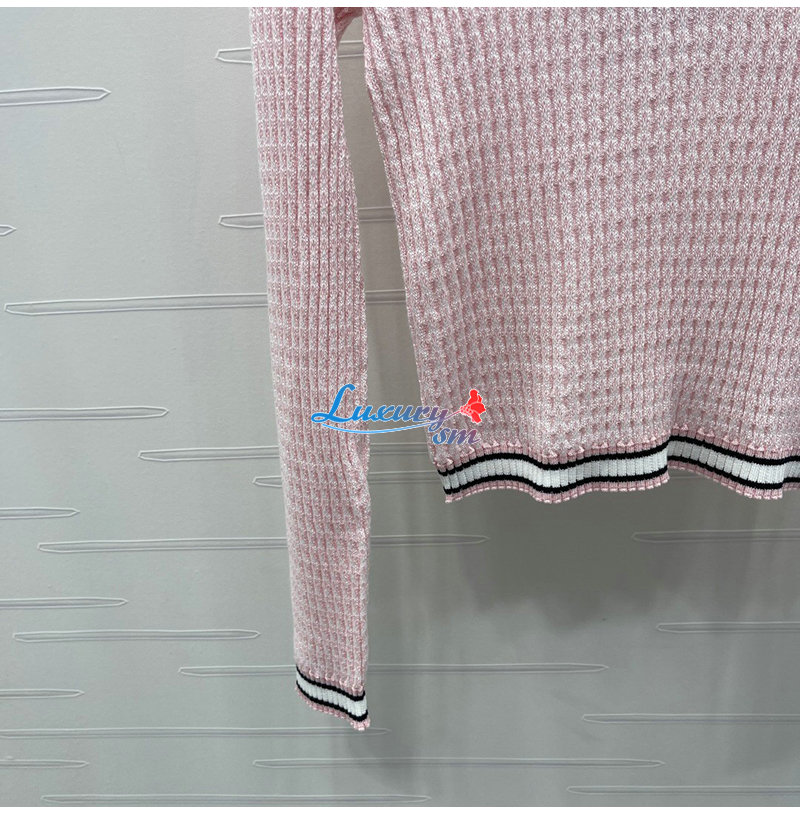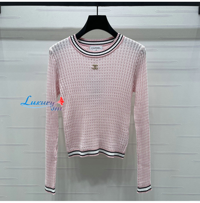 CHANEL-081714 샤넬 핑크 메탈 CC 로고 장식 스웨터
