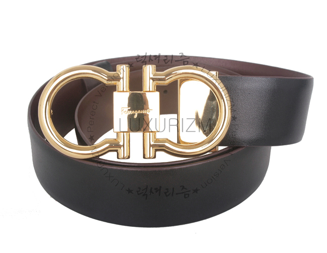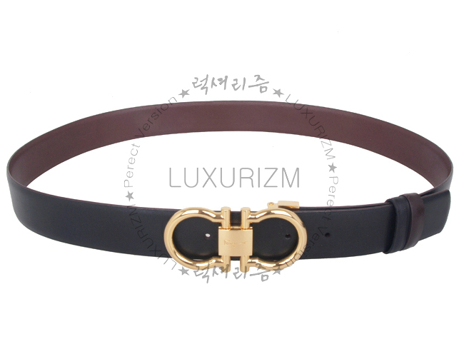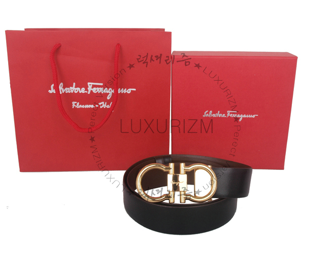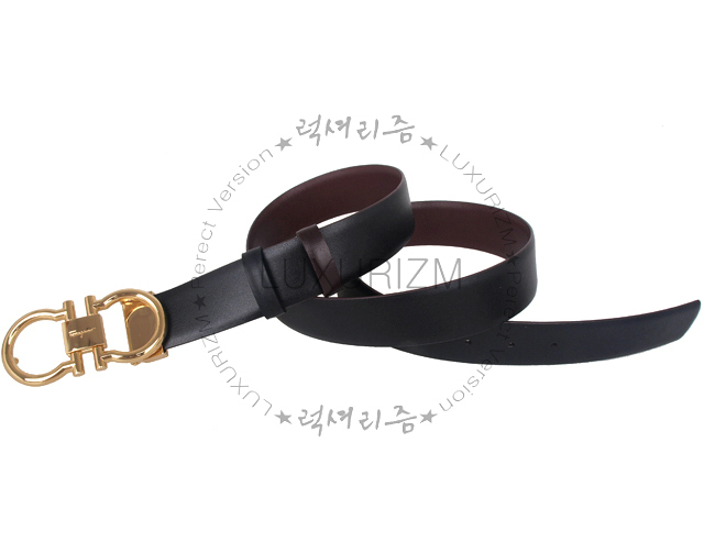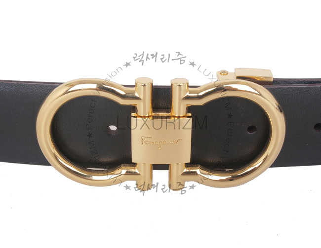 [스페셜오더] Salvatore Ferragamo-남성용 간치니 벨트 금장 블랙 (폭3.3cm)