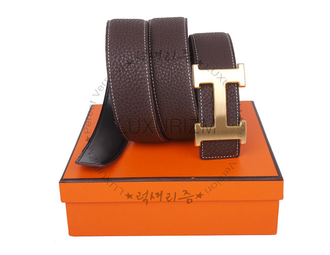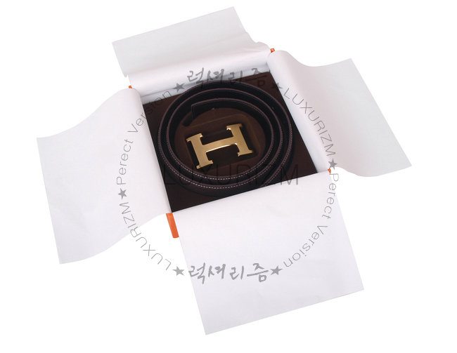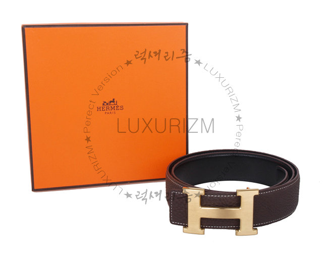 [스페셜오더] HERMES-H로고 벨트 커피 금장/은장