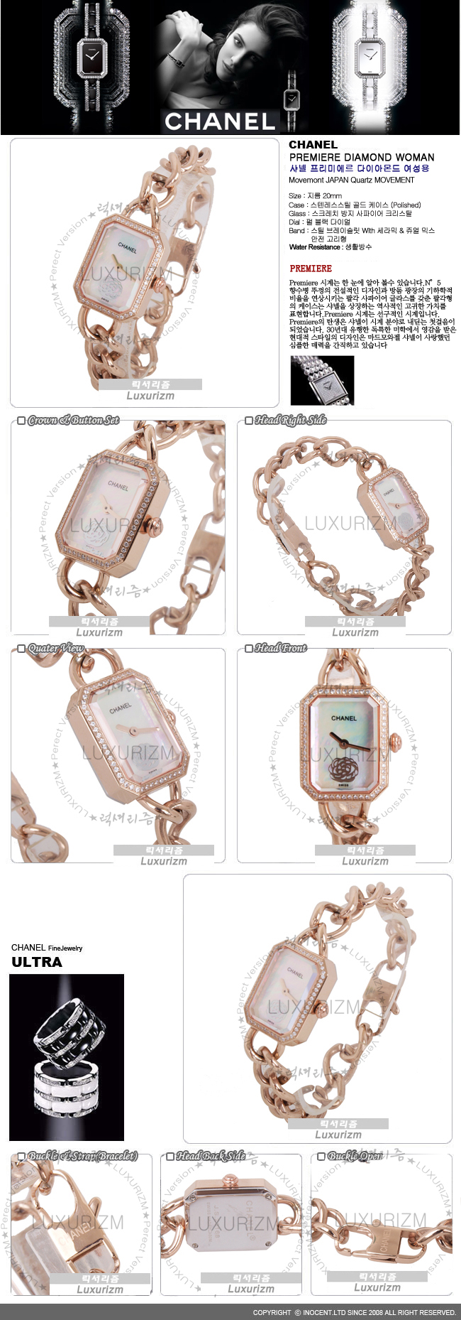 CHANEL-15543 여성용 프리미에르 다이아몬드 로즈골드 체인 흰판