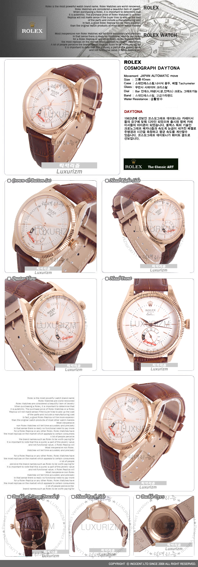 로렉스-1028 셀리니 세스트리 로즈골드 오토메틱 무브먼트 커피 흰판