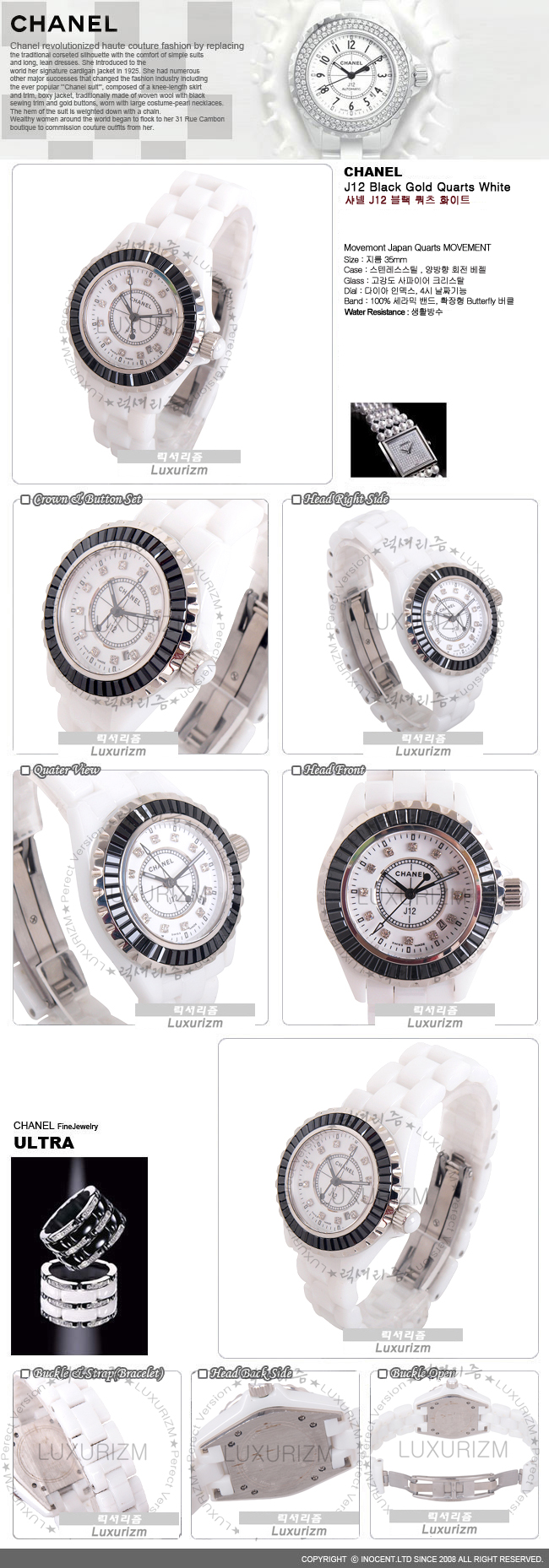 CHANEL-J12 다이아몬드 화이트 쿼츠