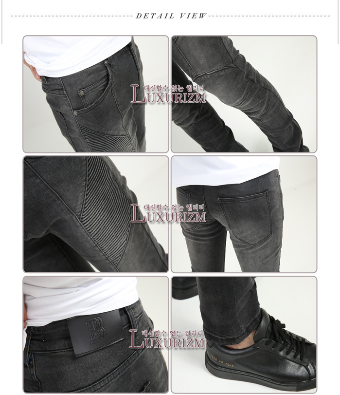 [자체제작] PIERRE BALMAIN-피에르발망 B패치로고 절개라인 스키니 바이커진 3컬러 블랙