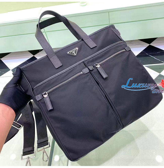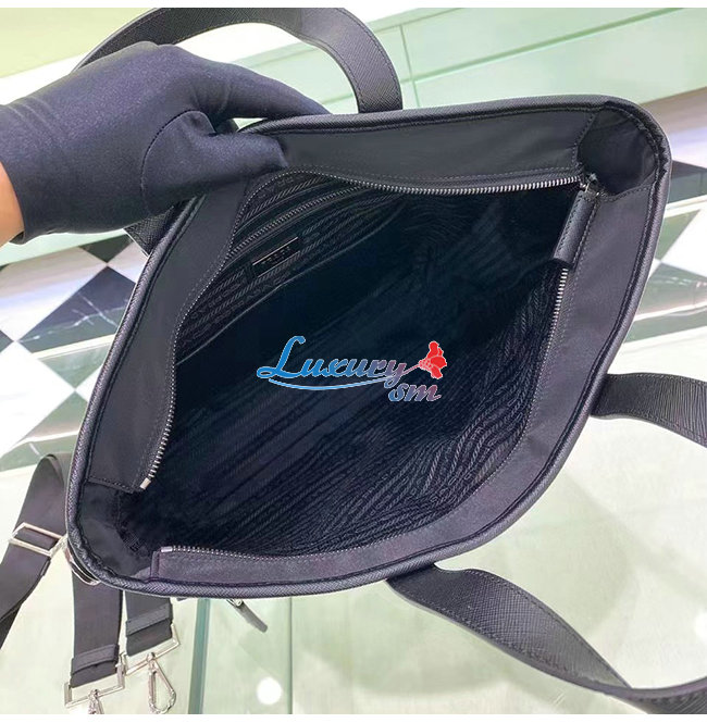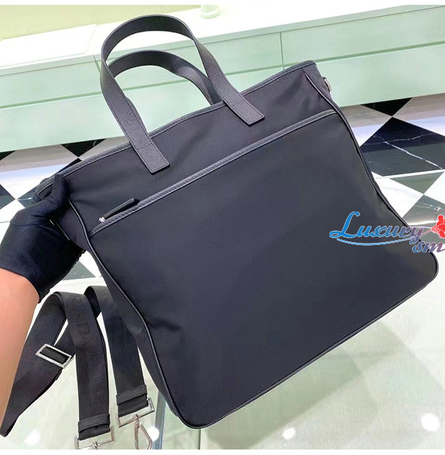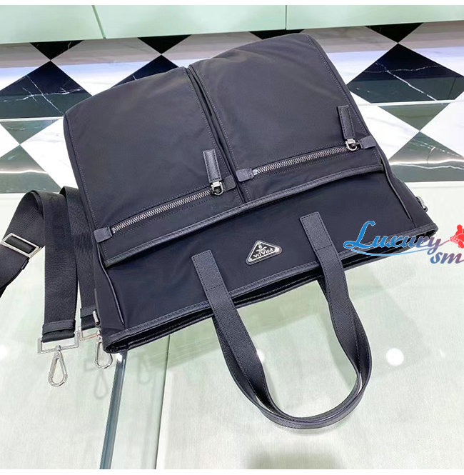 [스페셜오더]PRAD*-2VG860 프라다 사피아노 가죽 트림 나일론 토트백 블랙