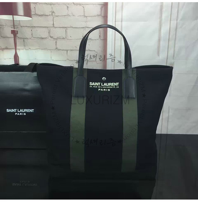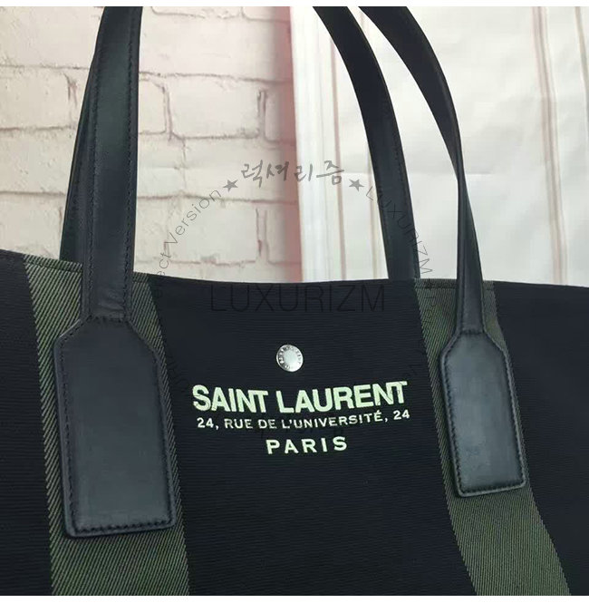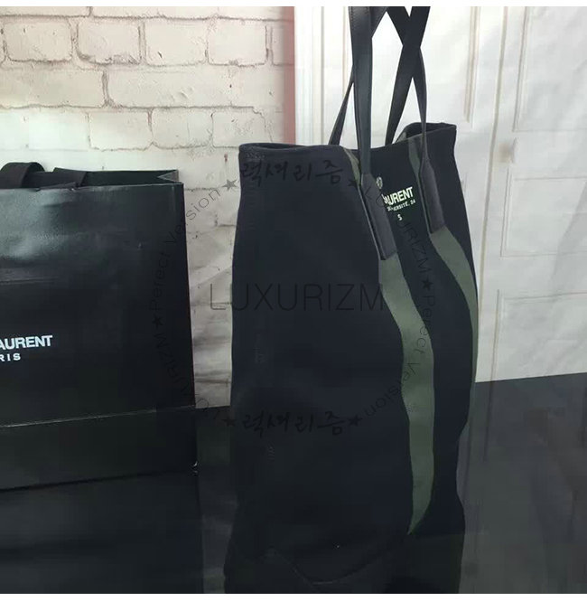 SAINT LAURENT-413054 생로랑 블랙 카키 캔버스 비치 쇼핑 토트 백