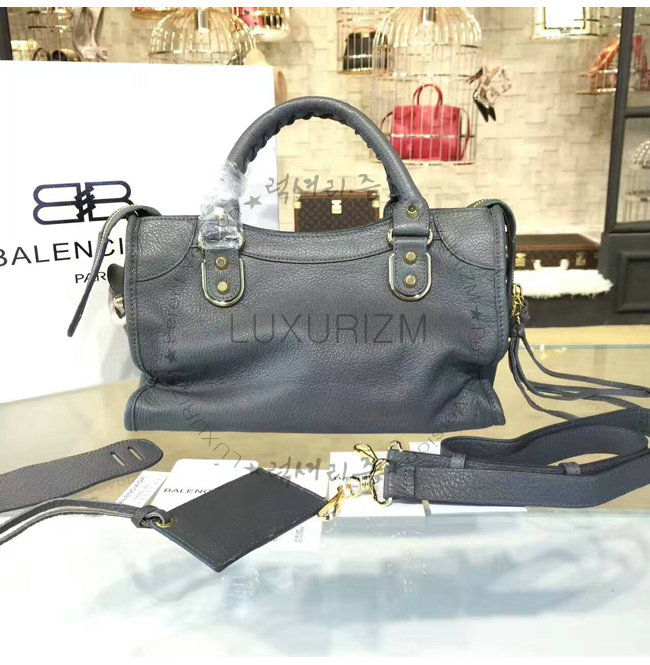 BALENCIAGA-B2915 발렌시아가 클래식 메탈 엣지 시티 미디엄 핸드 캐리 겸용 숄더백 그레이