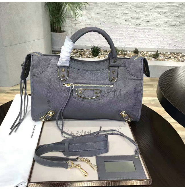 BALENCIAGA-B2915 발렌시아가 클래식 메탈 엣지 시티 미디엄 핸드 캐리 겸용 숄더백 그레이