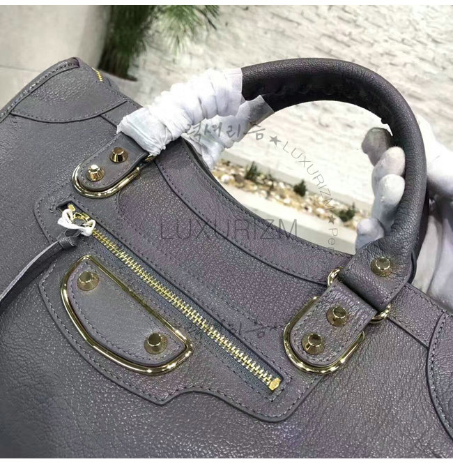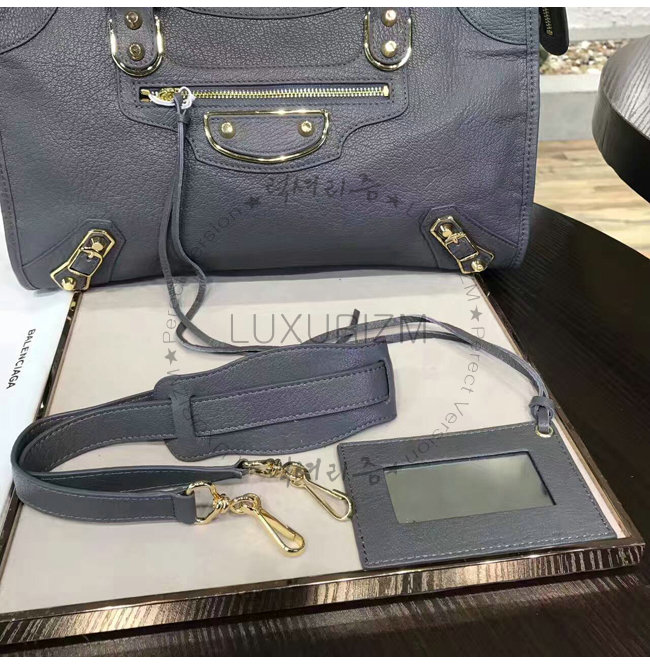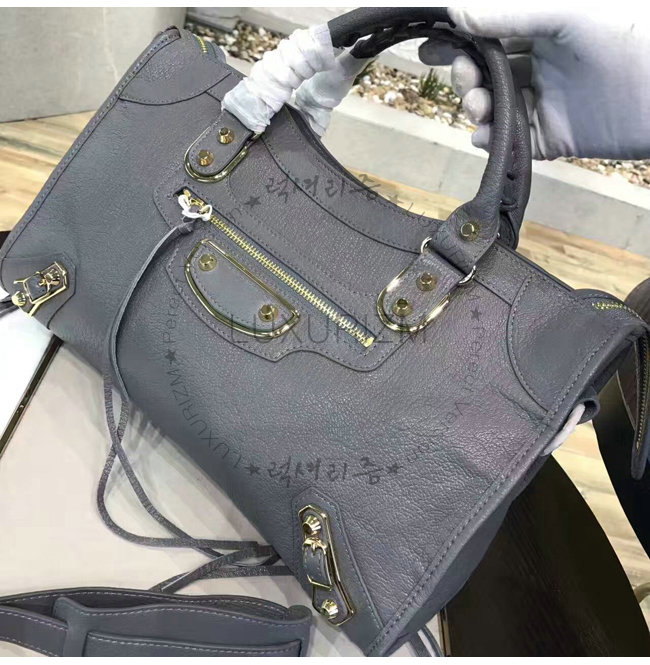 B2915 발렌시아가 클래식 메탈 엣지 시티 미디엄 핸드 캐리 겸용 숄더백 그레이.