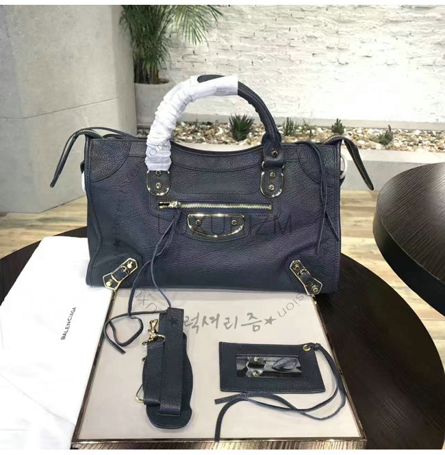 BALENCIAGA-B2915 발렌시아가 클래식 메탈 엣지 시티 미디엄 핸드 캐리 겸용 숄더백 블루