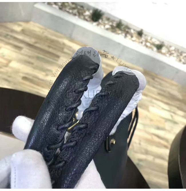 -핸드 스티치 장식 손잡이 / 탈착 가능한 숄더 스트랩 / 탑 지퍼 잠금장치/그레인 염소가죽.