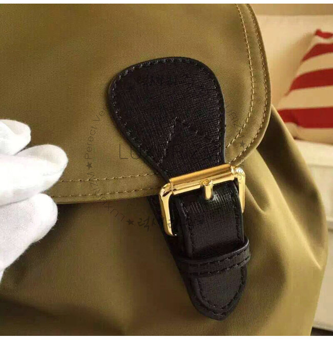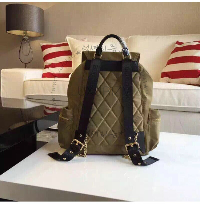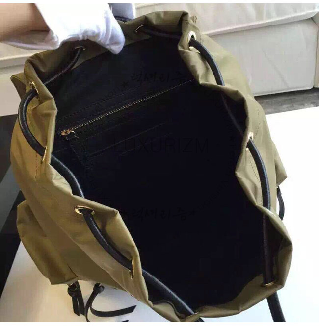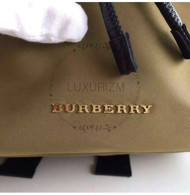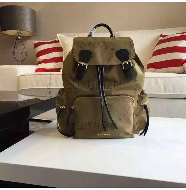 BURBERRY-380233 버버리 미디엄 테크니컬 나일론 가죽 럭색 캔버스 그린