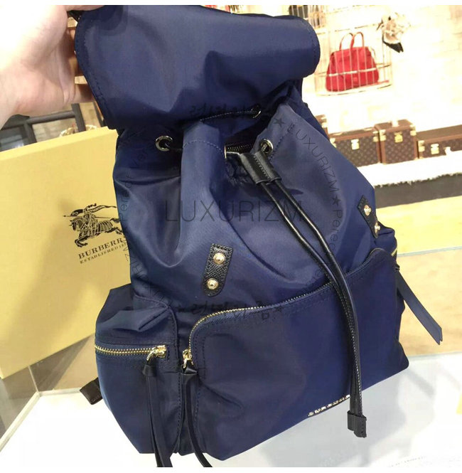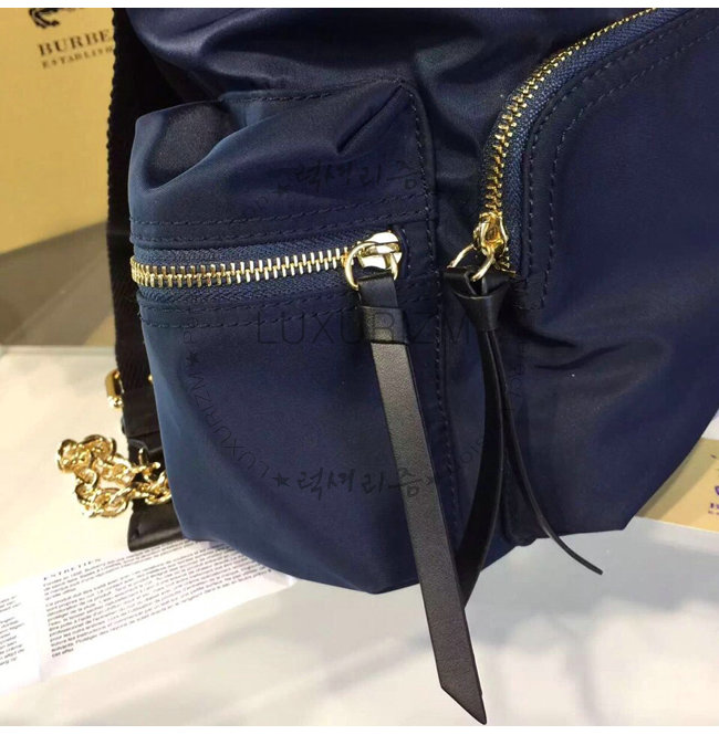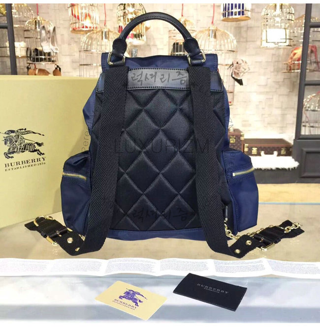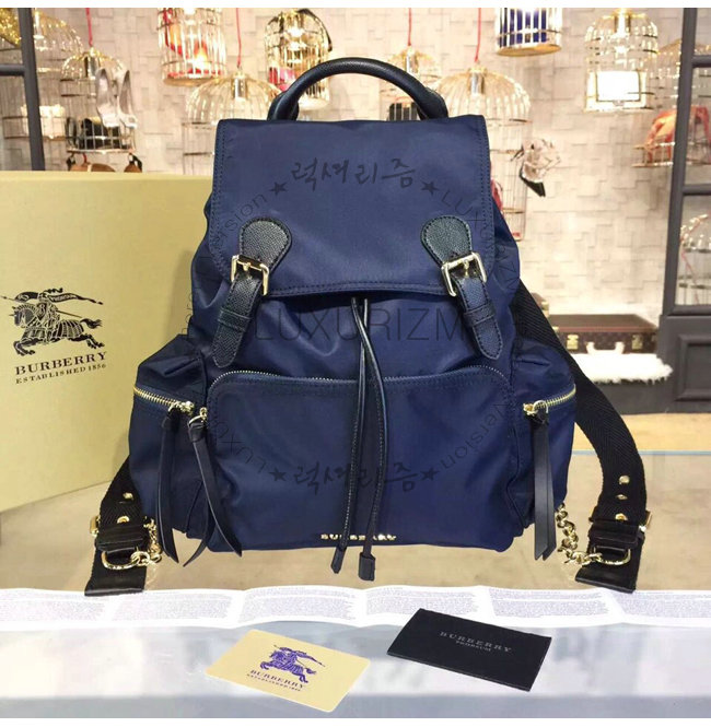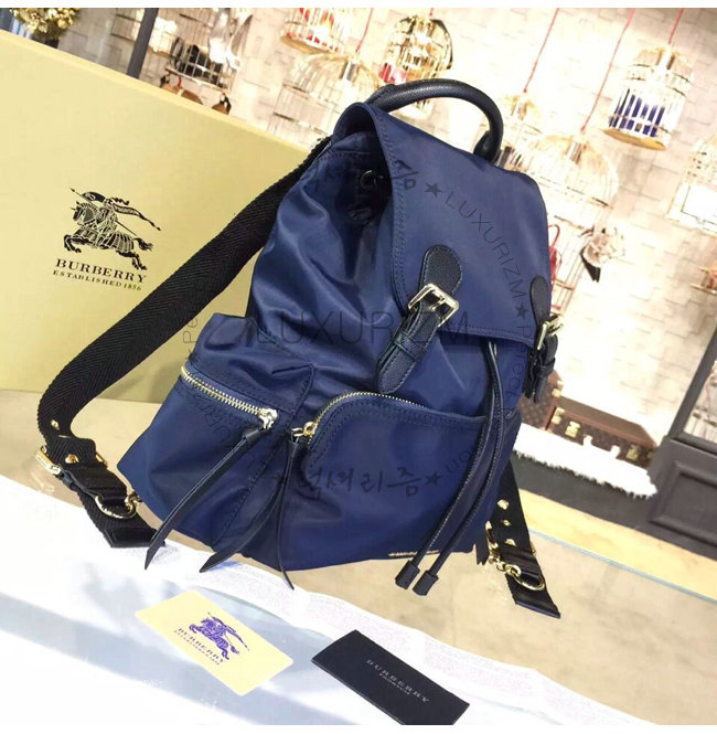 BURBERRY-380233 버버리 미디엄 테크니컬 나일론 가죽 럭색 잉크 블루