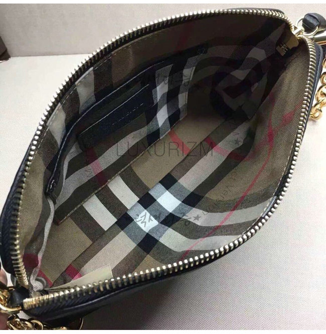 BURBERRY-40147411 버버리 하우스 체크 가죽 클러치백 블랙