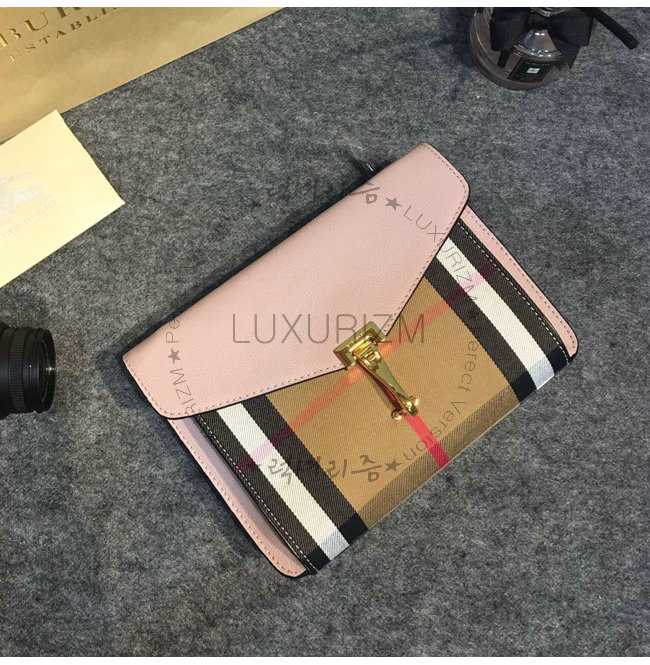 BURBERRY-39753271 버버리 스몰 가죽 하우스 체크 크로스바디 백 페일 오키드