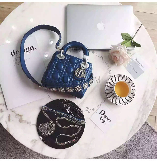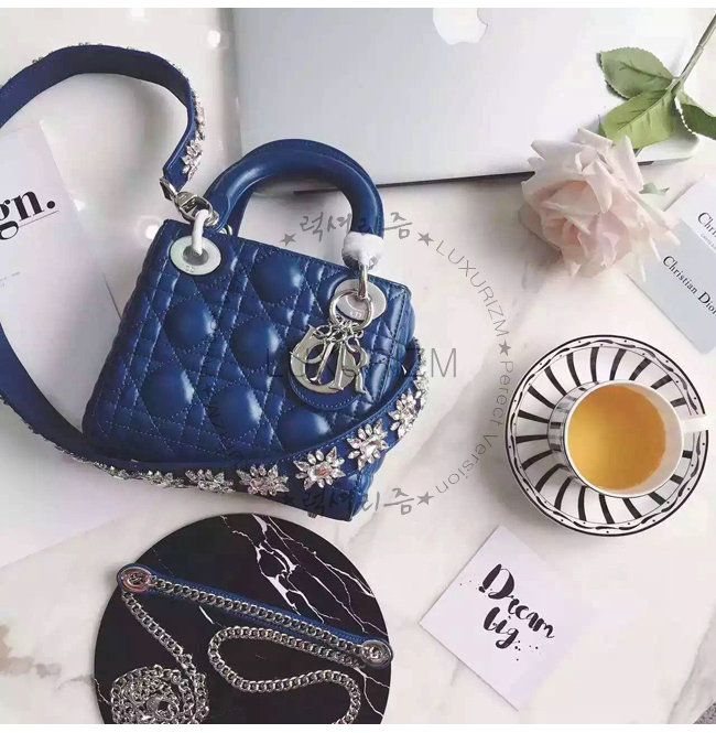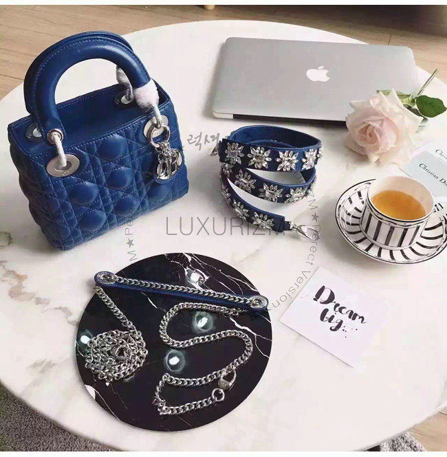 포세이돈 블루 양가죽 백으로 디올의 상징인 "까나쥬" 스티칭 장식이 특징.