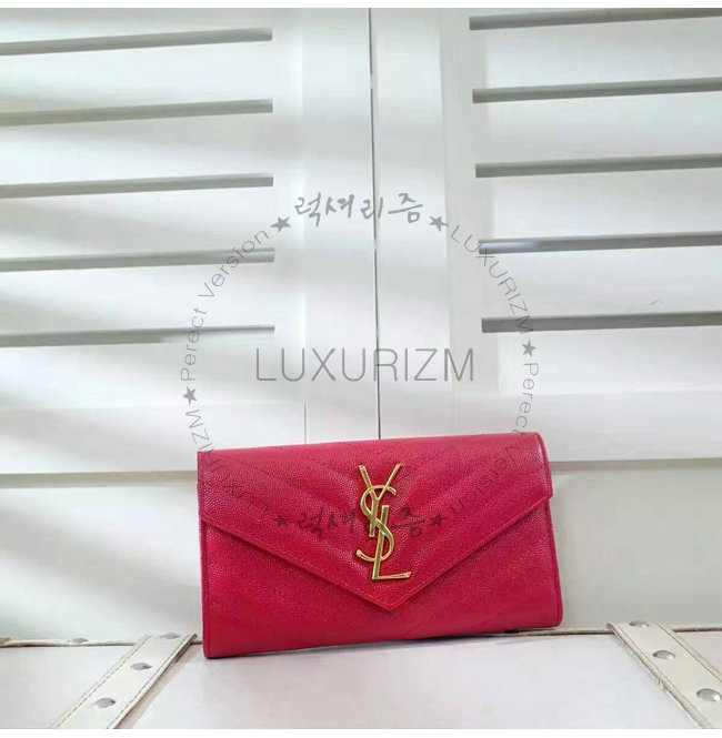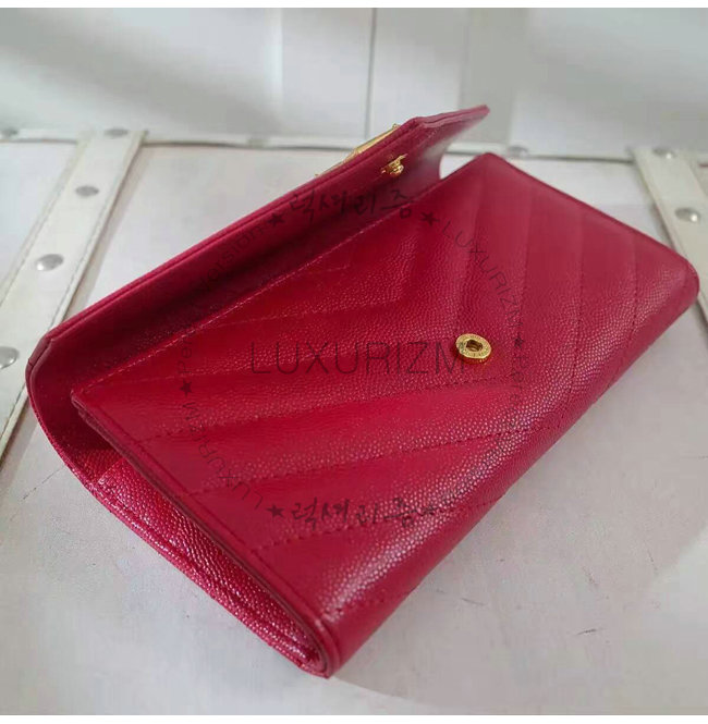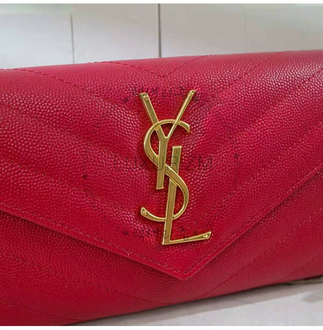 SAINT LAURENT-372264 생로랑 립스틱 레드 그랑 드 뿌드르 텍스처드 라지 모노그램 플랩 클러치
