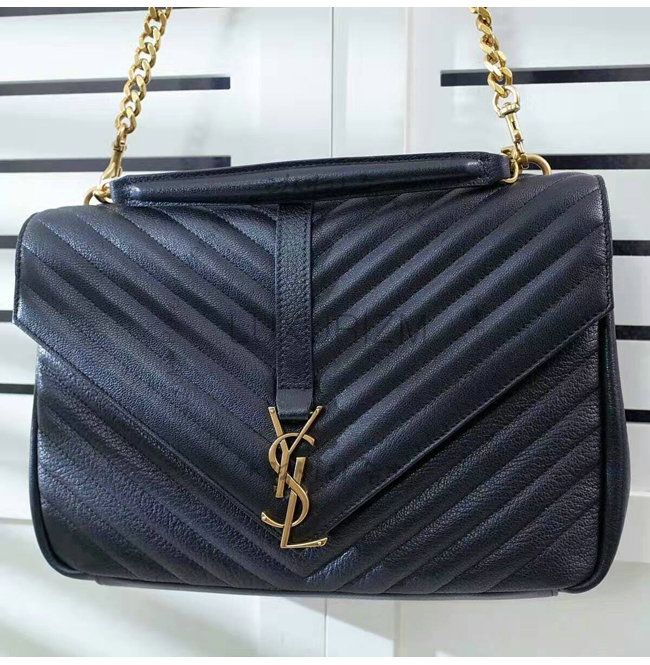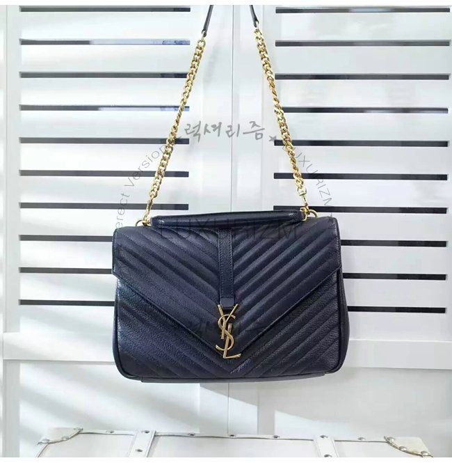 #홍콩명품쇼핑몰byfjrtuflwma스페셜오더SAINT LAURENT-생 로랑 블랙 마틀라세 가죽 클래식 금장 라지 모노그램 생로랑 컬리지 백.