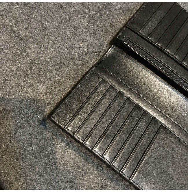 같은 계열 색상의 스티치 디테일과 스모크 체크 패턴이 돋보이는 장지갑