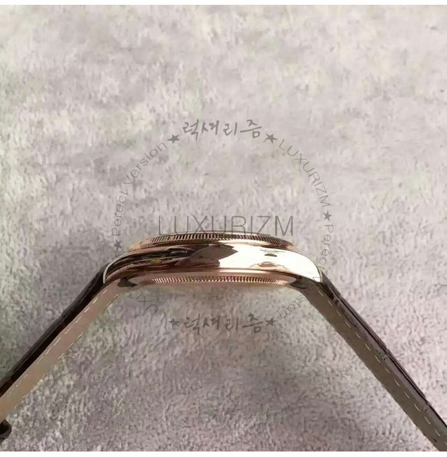 -에버로즈 골드 (IPG) 특수 도금 케이스/더블 베젤 돔드 및 플루티드/가죽 스트랩.