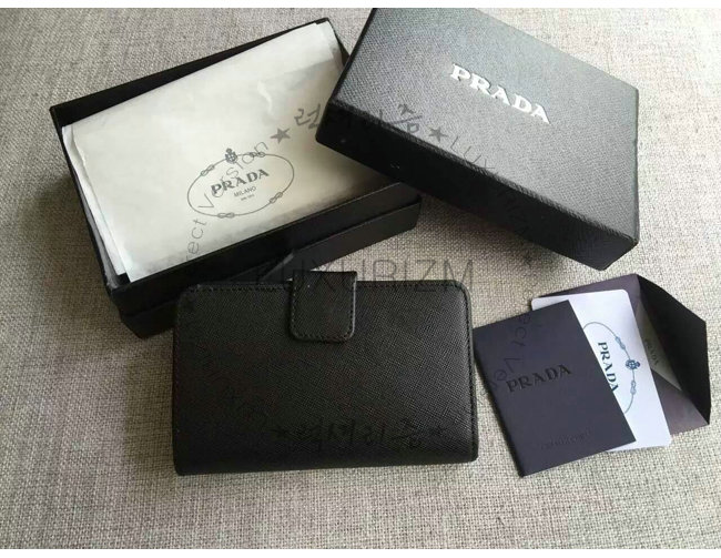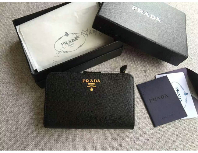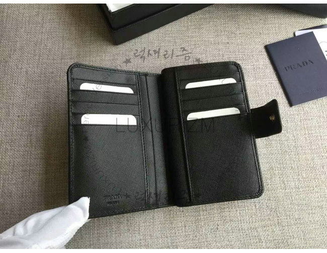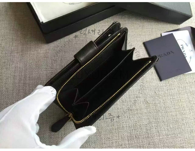 [스페셜오더]PRADA-1ML225 프라다 사피아노 메탈릭 골드 가죽 지갑 블랙
