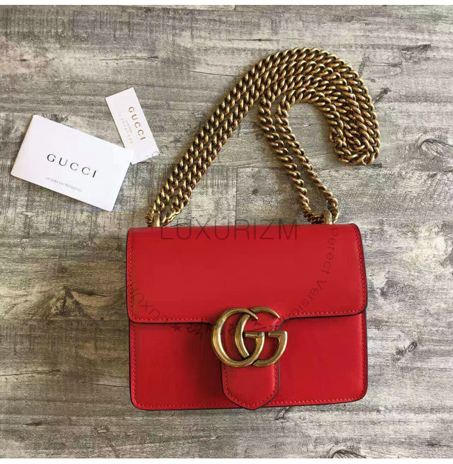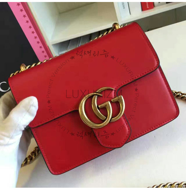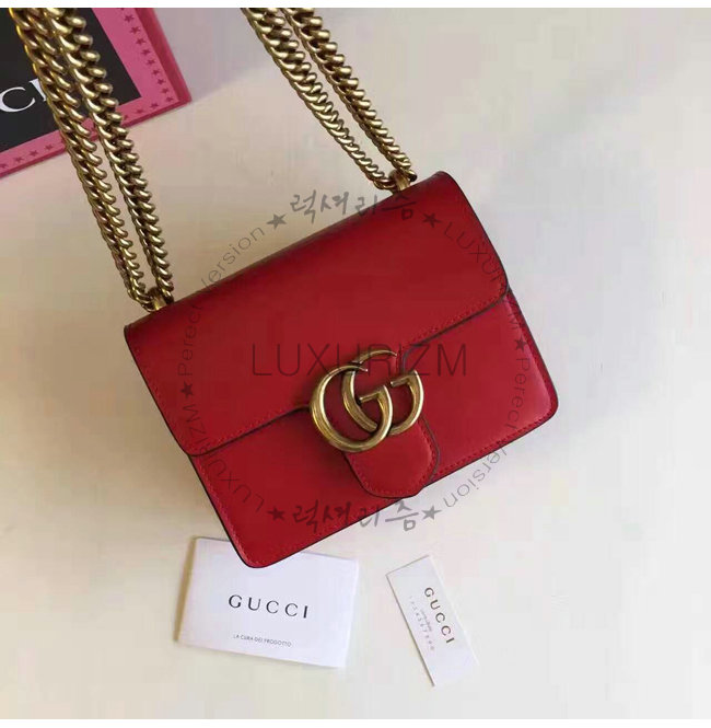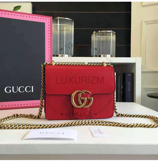 [스페셜오더]GUCCI-431384 6433 GG 마몽 스몰 사이즈 스트럭처드 체인 숄더백 레드