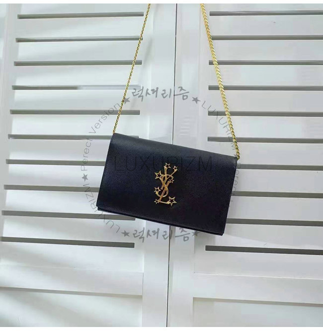 [스폐셜오더]SAINT LAURENT-447933 생로랑 블랙 인터로킹 스타 YSL 시그니처 모노그램 체인 플랩 프론트 지갑