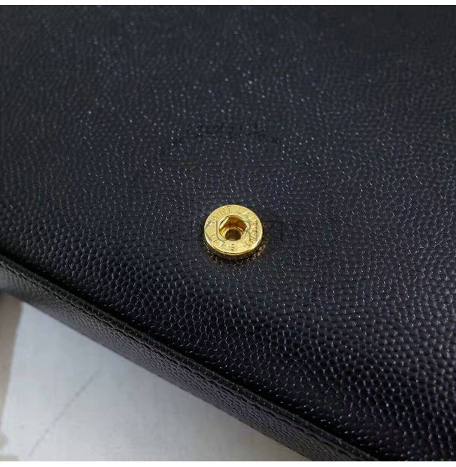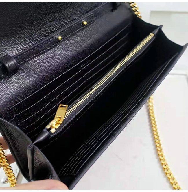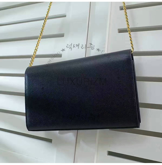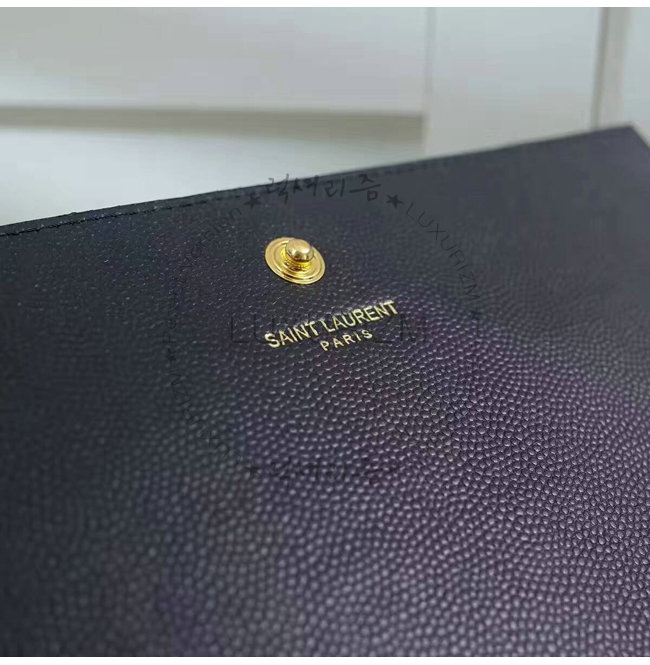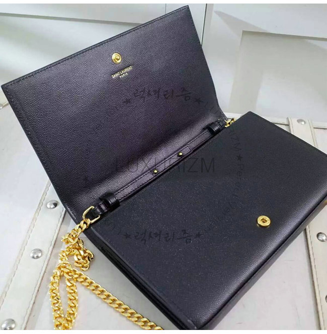 블랙 그랑 드 뿌드르 텍스처드 가죽 소재 모노그램 생 로랑 체인 지갑