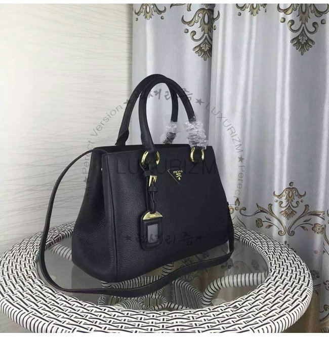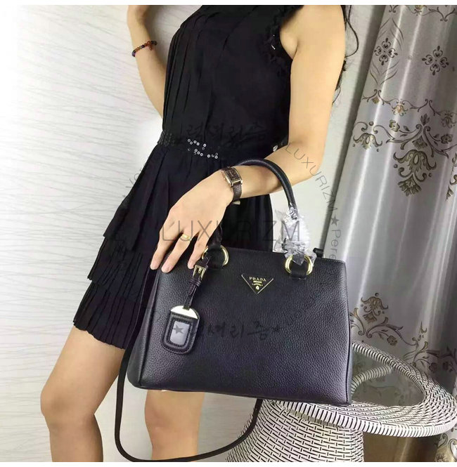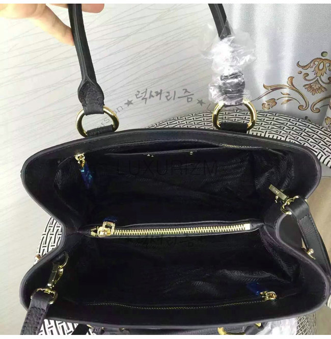 [스페셜오더]PRADA-1BA579/2961 프라다 더블 가죽 핸들 숄더 스트랩 토트 백 블랙