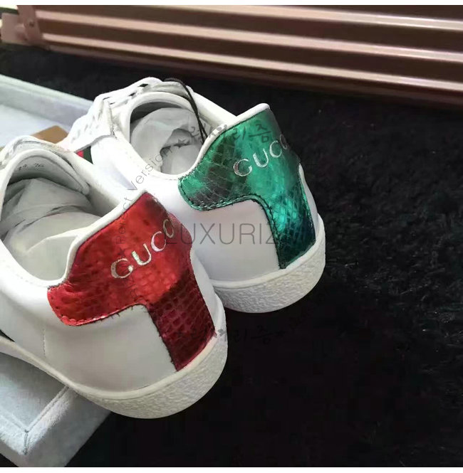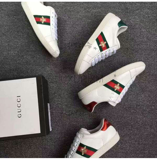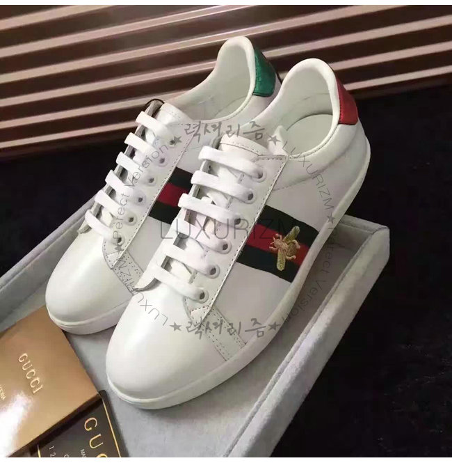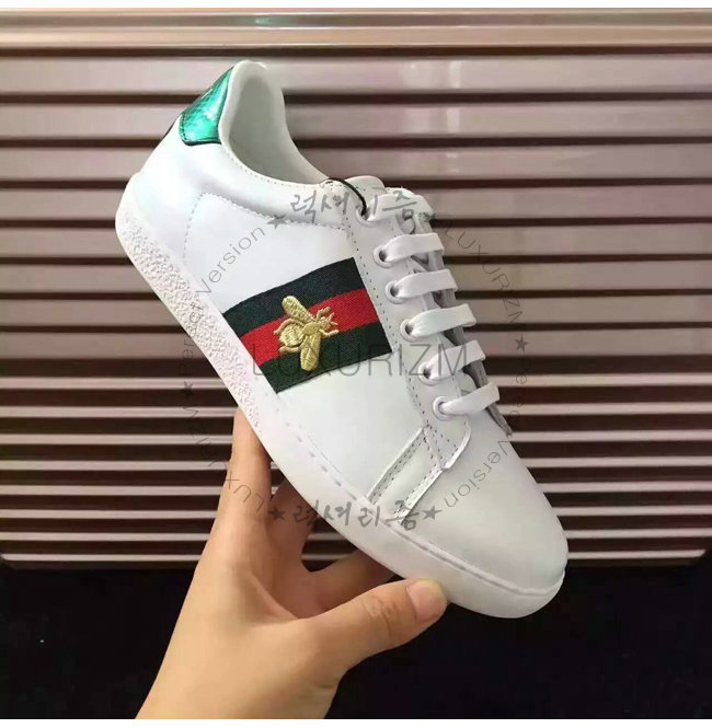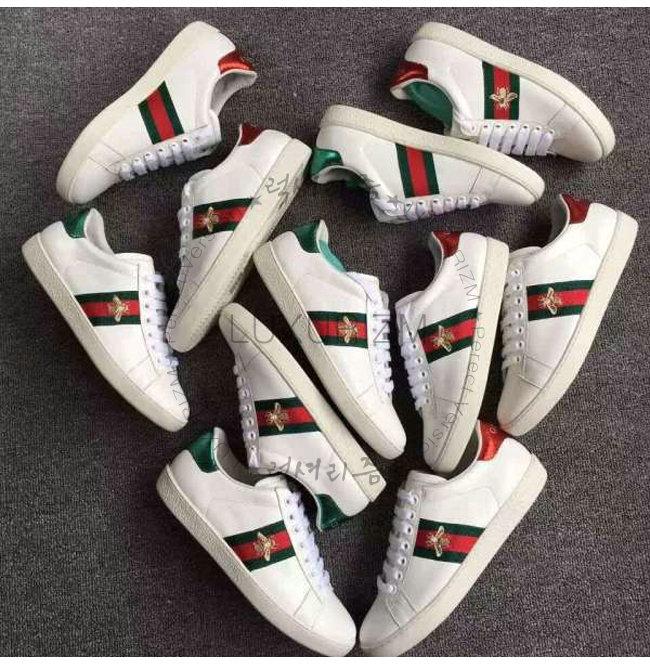 -2016 프리폴 컬렉션/화이트 가죽 그린/레드/그린web 벌 모양의 골드 실 자수.