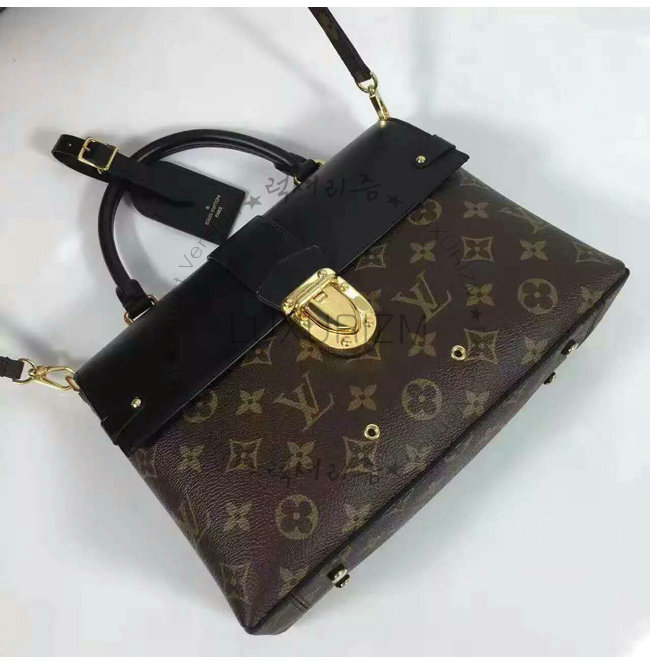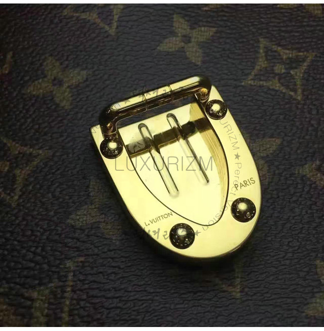 -토론 손잡이/시그니처 턱 잠금 장치/가죽과 아일렛 소재 측면 브래킷/LV 시그니처가 네임 태그.