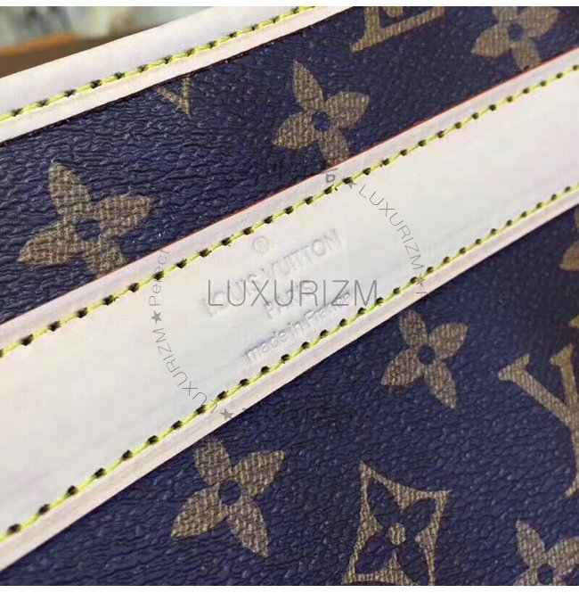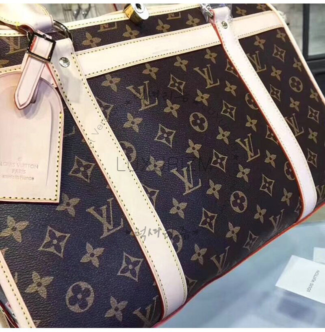 - 모노그램 캔버스 라인 - 크로스 그레인 둥근 실루엣의 가죽 손잡이 세탁 가능한 라이닝