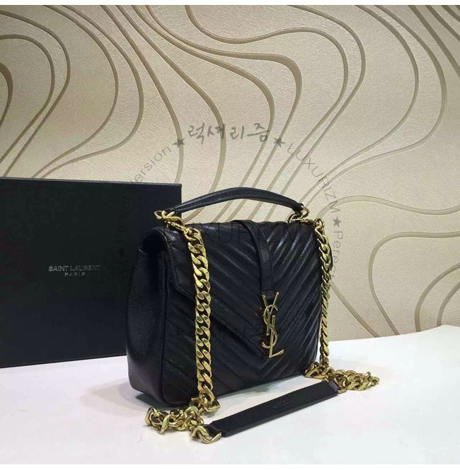 [스페셜오더]SAINT LAURENT-428056 생 로랑 블랙 마틀라세 가죽 클래식 금장 미디엄 모노그램 생 로랑 컬리지 백