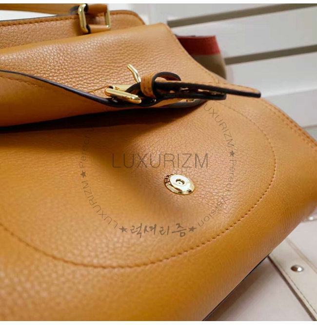 BURBERRY-40204971 버버리 미디엄 캔버스 체크 가죽 토트백 새들 브라운
