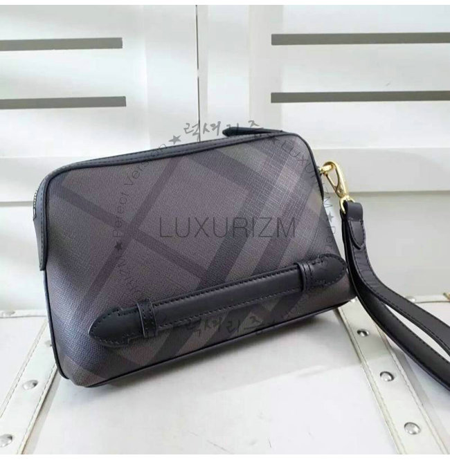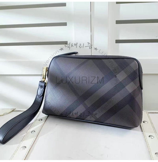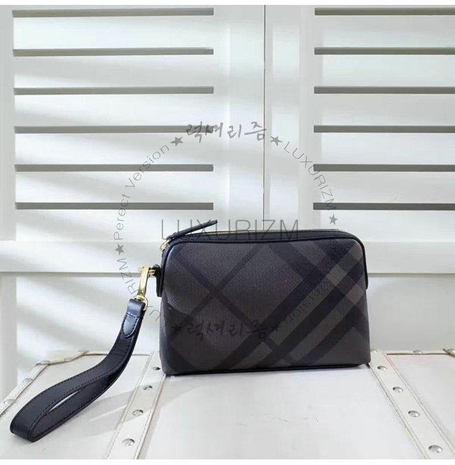 BURBERRY-64552 버버리 가죽 트리밍 런던 체크 파우치 네이비/블랙 가격 : 220,000원