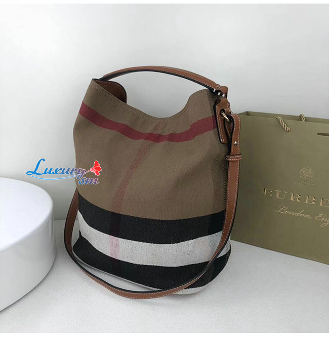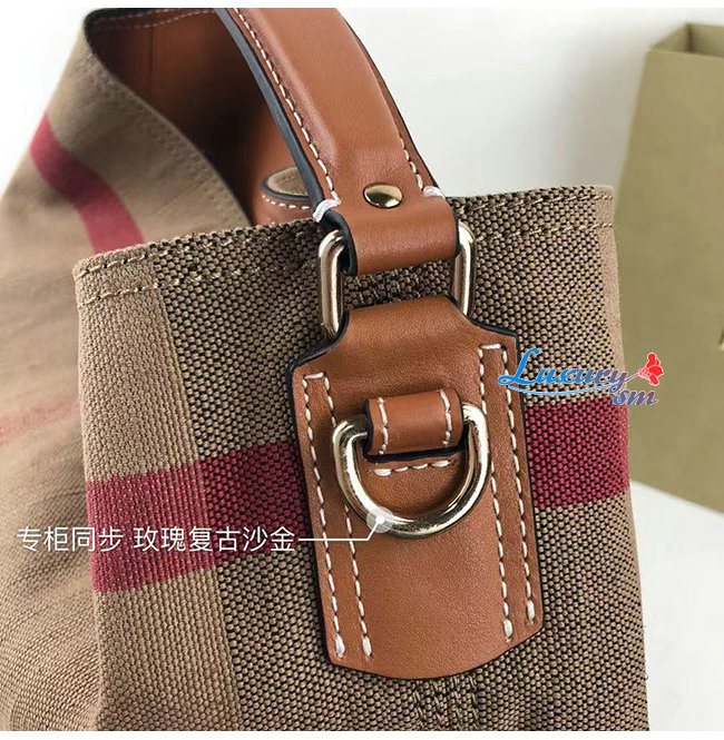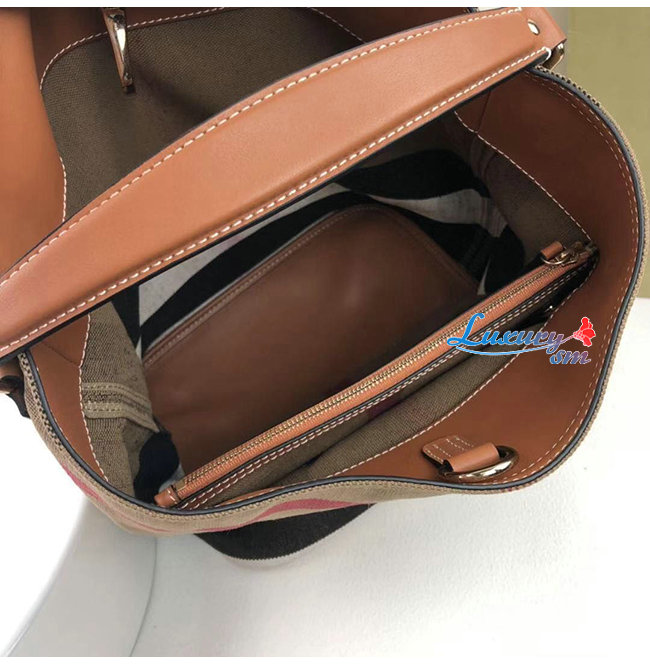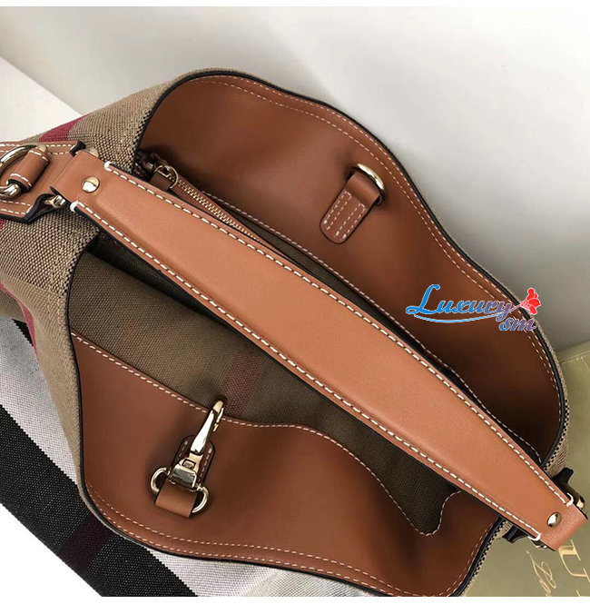 [스페셜오더]BURBERRY-39457 버버리 미디엄 캔버스 체크 가죽 애쉬비 새들 브라운