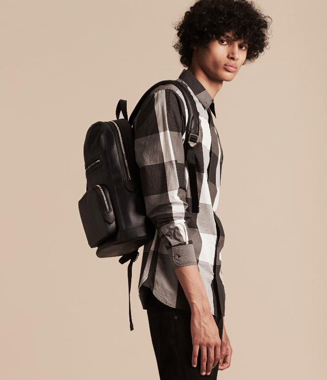 -매끄러운 가죽 트리밍과 런던 체크 패턴이 돋보이는 간결한 디자인의 백팩.