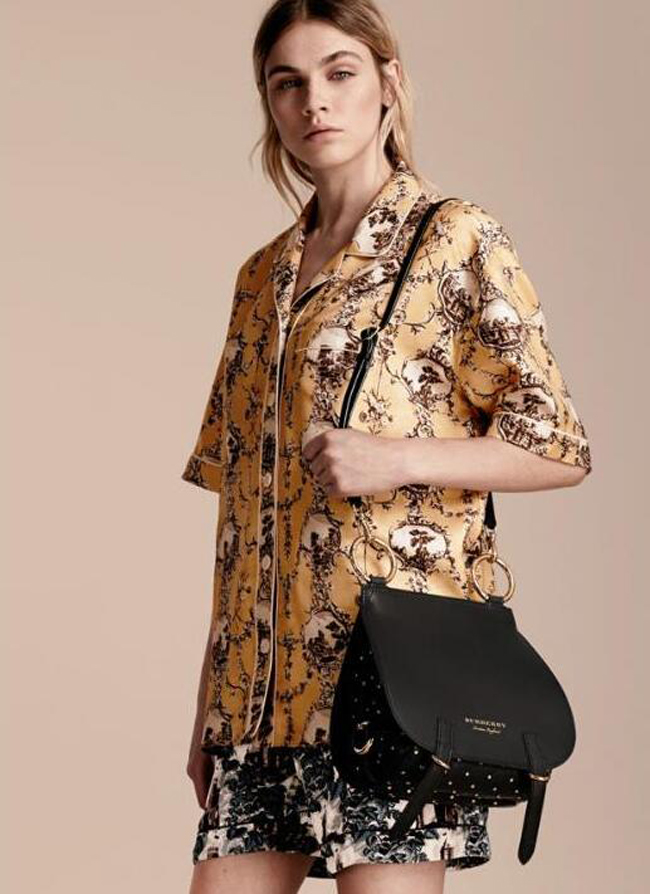 브라이들 가죽과 스터드 장식 레더 소재의 조화가 돋보이는 이퀘스트리안 스타일 런웨이 사첼.