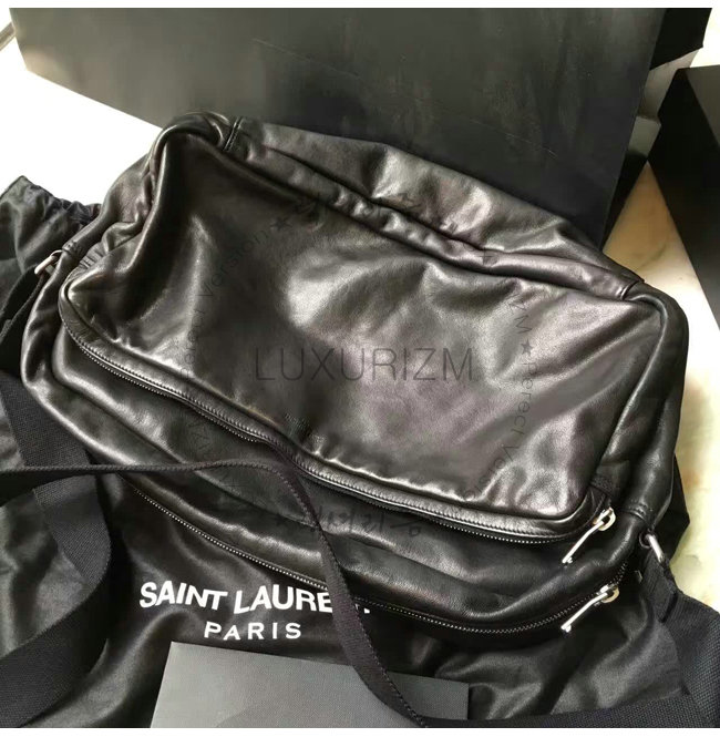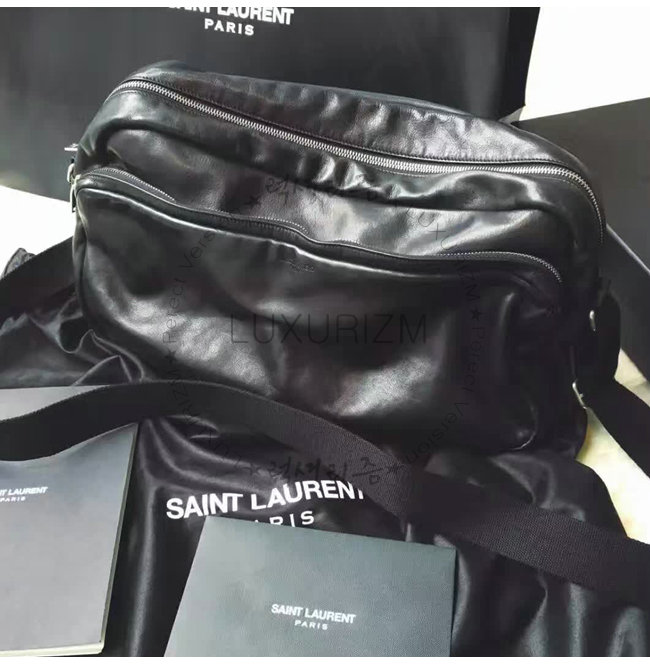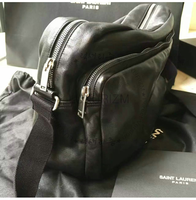 #스폐셜오더 SAINT LAURENT-생 로랑 블랙 워시드 가죽 델라베 지퍼 남녀공용 카메라 백