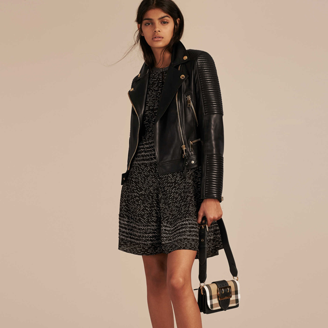 하우스 체크와 독특한 질감의 가죽 소재 버클 백.