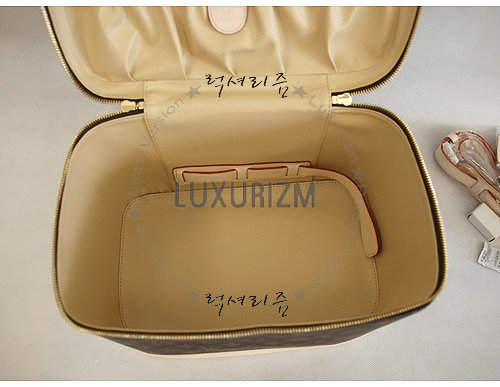 지퍼 잠금으로 장식된 모노그램 캔버스 라인의 세련된 뷰티 케이스입니다. 숄더백 및 손으로 들어 연출하실 수 있으며 거울 지퍼 포켓 및 병 수납을 위한 스트랩으로 구성되어 있습니다.
