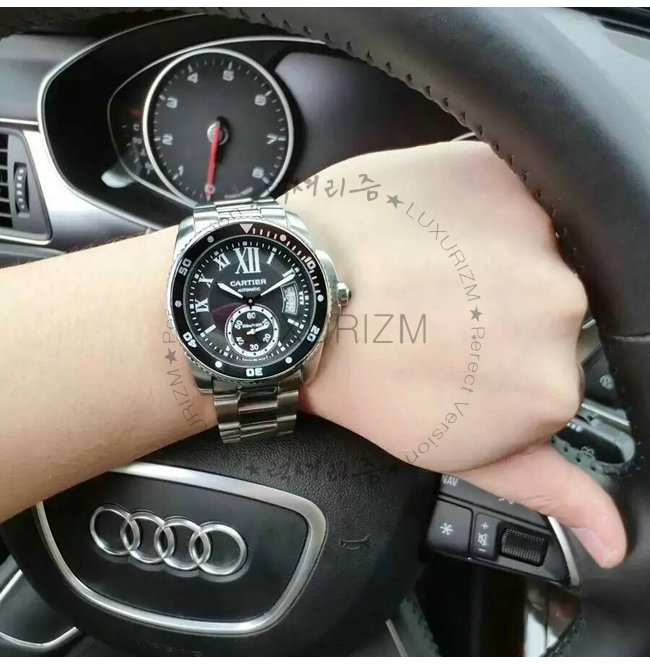 #스폐셜오더 완벽재현 상품 Cartier-까르띠에 칼리브 드 까르띠에 다이버 블랙 다이얼 스틸 워치 42mm 이세상 정품보다 살짝 약한제품은 럭셔리즘 제품입니다.