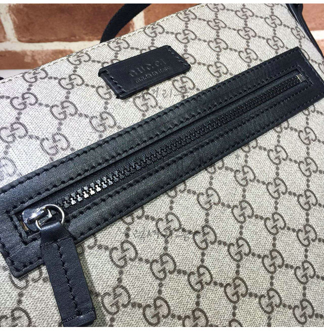 -가죽 트리밍 디테일 및 나일론 스트랩 디테일의 미디엄 사이즈 GG 수프림 캔버스 플랫 메신저 백.