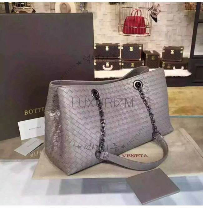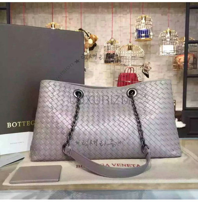 BOTTEGA VENETA-7640 보테가 베네타 뉴 라이트 그레이 인트레치아토 나파 라지 토트 백