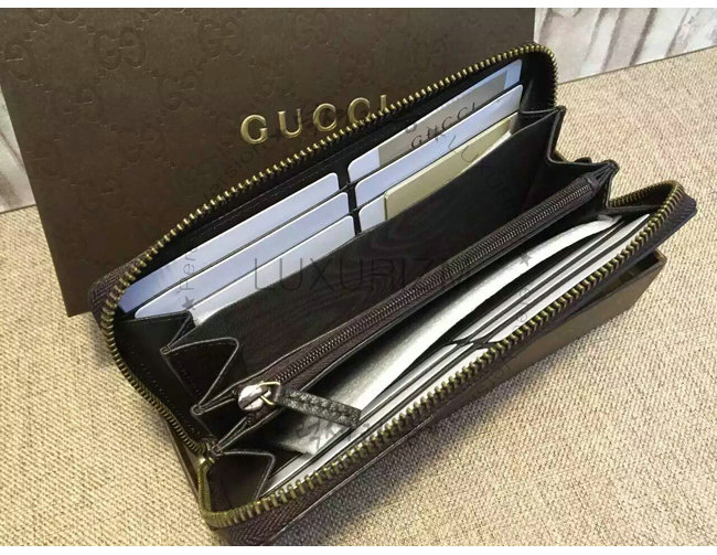 -베이지/에보니 오리지널GG캔버스 다크브라운 가죽 디테일/지퍼 달린 잠금장치 web 장지갑.