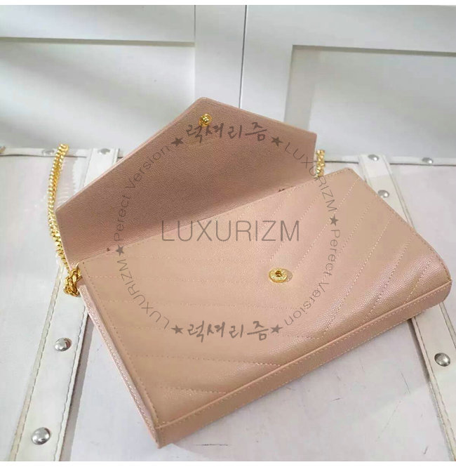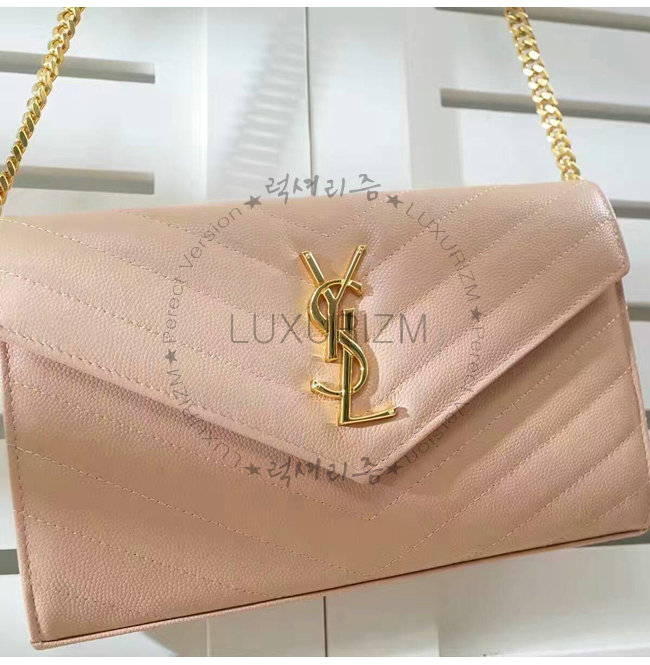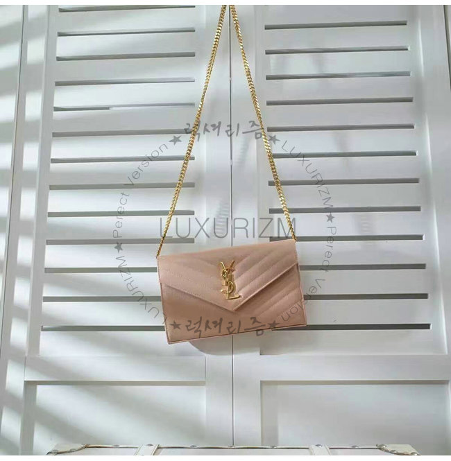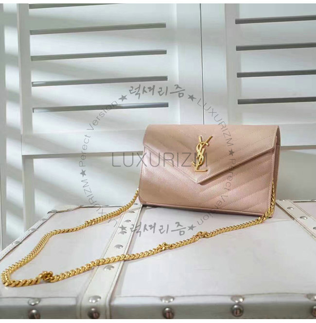 [스페셜오더]SAINT LAURENT-377828 생로랑 핑크 마틀라세가죽 금장 모노그램 체인숄더백