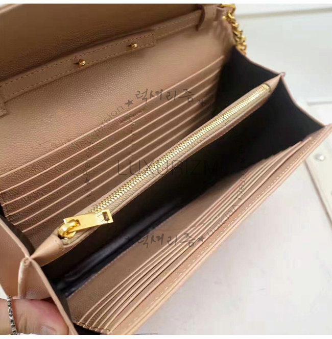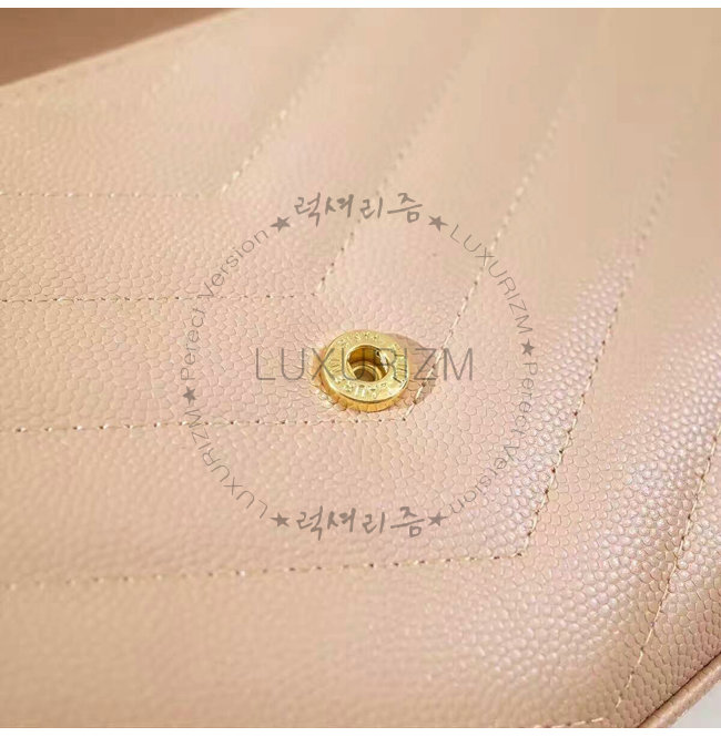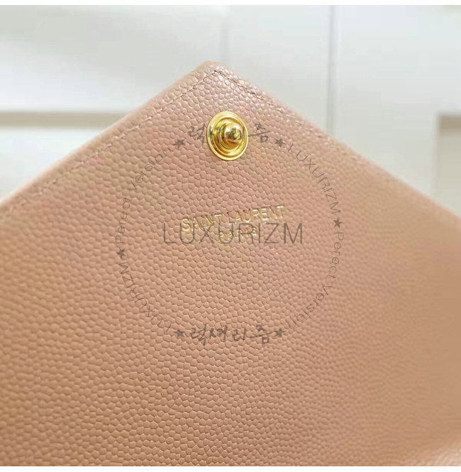 #홍콩 럭셔리즘 스페셜오더SAINT LAURENT-생로랑 페일 핑크 금장 그랑 드 뿌드르 텍스처드 마틀라세 가죽 모노그램 생로랑 체인지갑.