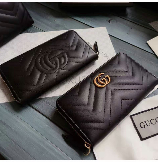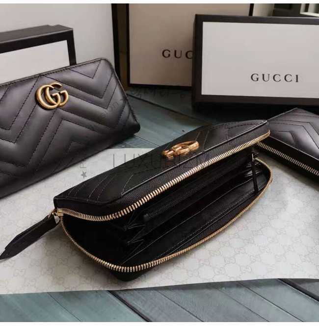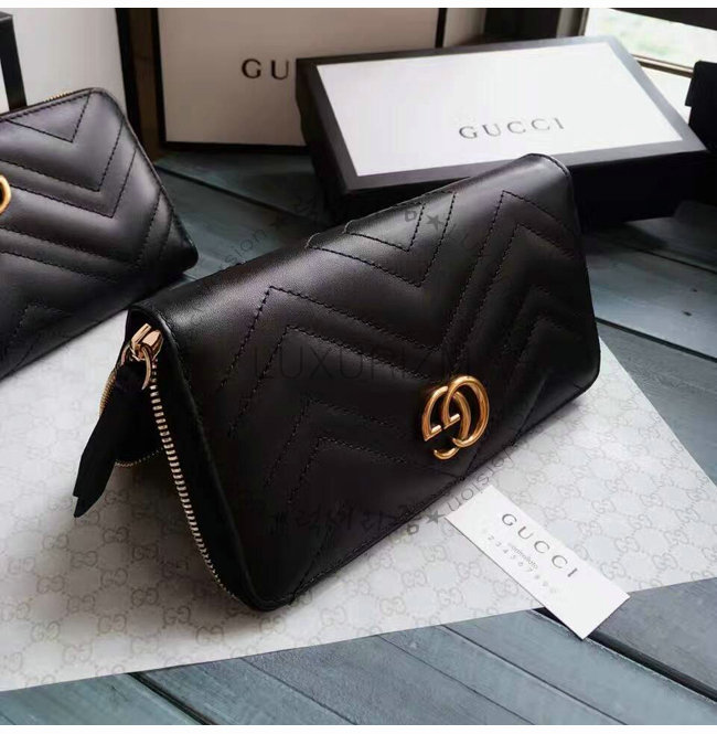 [스페셜오더]GUCCI-443123 1000 구찌 [GG Marmont] 마몽 블랙 마틀라세 쉐브론 지피 월릿