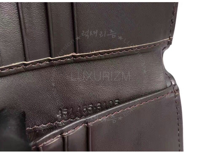 -브라운 가죽 트리밍/6개의 카드 슬롯 및 2개의 지폐 컴파트먼트.