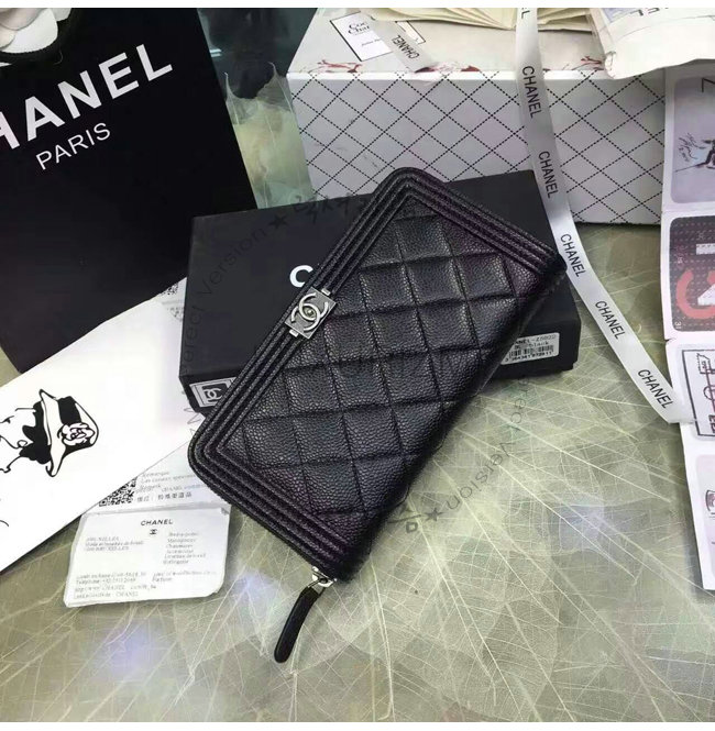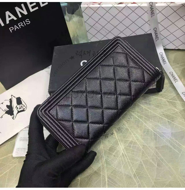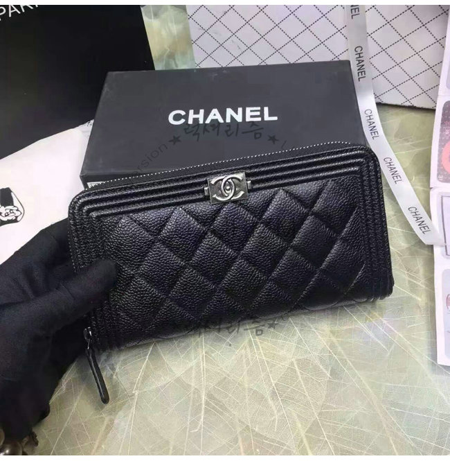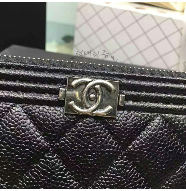 [스페셜오더]CHANEL-A80815 샤넬 보이 고트스킨 루테늄 메탈 지퍼 지갑 블랙